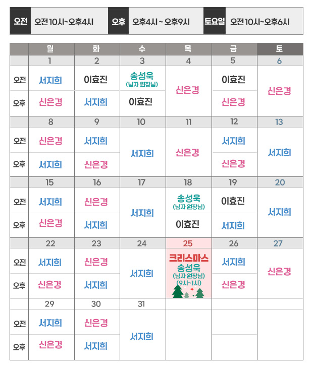 12 월 강남점 원장님 진료스케줄